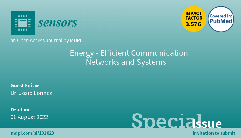 The Special Issue on "Energy-Efficient Communication Networks and Systems" organized by Josip Lorincz as a guest editor has been opened for submission of papers in Sensors journal.